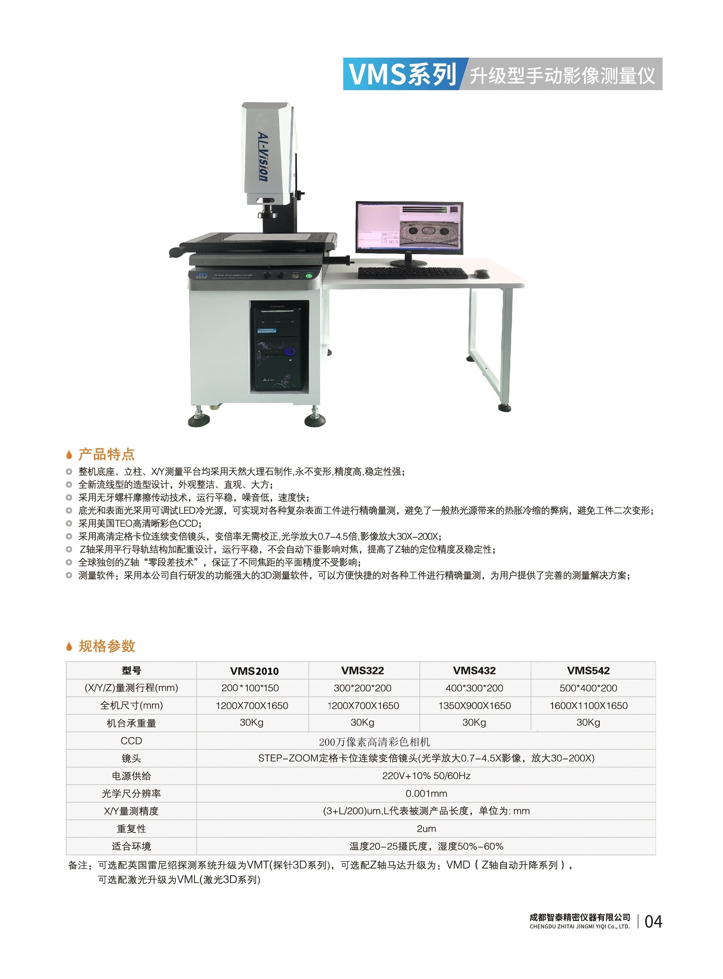 成都智泰精密儀器有限公司專注于精密測量儀器,人工智能,智能制造領域,專業(yè)從事智能視覺自動化檢測解決方案的貿易型企業(yè)。公司成立于2011年,位于天府之國成都,現(xiàn)有行業(yè)精英十余人,辦公倉儲面積200余平米。 公司主要產品為精密光學影像測量儀,精密輪廓形狀測量儀,精密機器人定位系統(tǒng),精密智能視覺尺寸檢測儀器,精密表面缺陷智能檢測設備,工業(yè)工程特種機器人。 公司憑借過硬的技術實力和產品方案,率先進入智能視覺自動化檢測領域,推廣以精密智能視覺自動化檢測為基礎的機器人自動化應用,公司不斷整合上下游的資源,擁有巨大的全產業(yè)鏈優(yōu)勢。客戶群體覆蓋了我國精密制造業(yè)的多數(shù)領域,包括航空、航天、軍工、汽車、新能源、光伏、食品,精密電子、精密機械、模具、PCB、LCD、五金、塑膠、醫(yī)療、教育、計量及科研院所等行業(yè)。 公司創(chuàng)新的產品能滿足生產與制造行業(yè)客戶的要求,訓練有素的工程師能及時提供多種技術服務,如解...